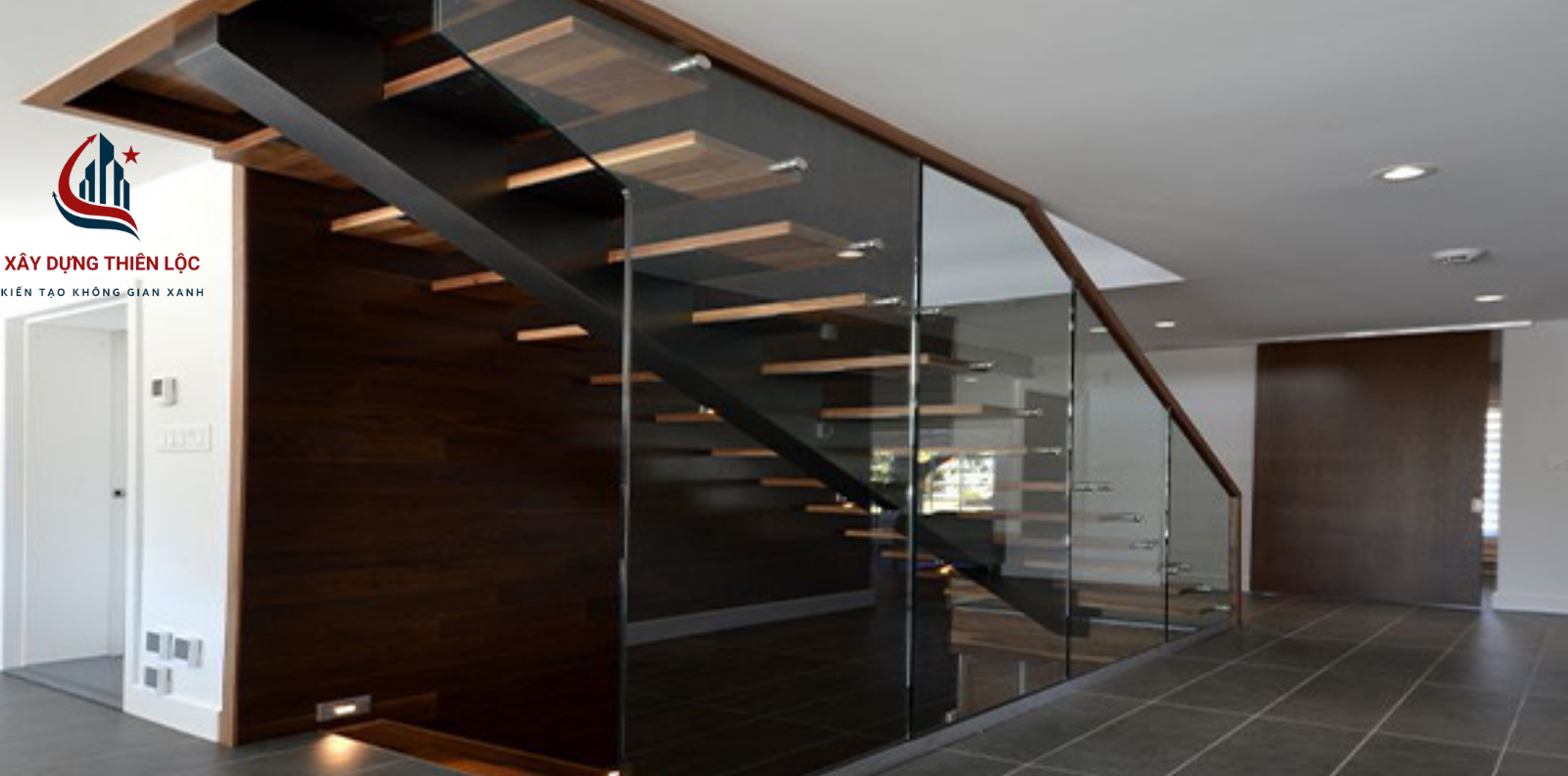 - Bậc thang: Ốp gỗ tự nhiên hoặc để trần