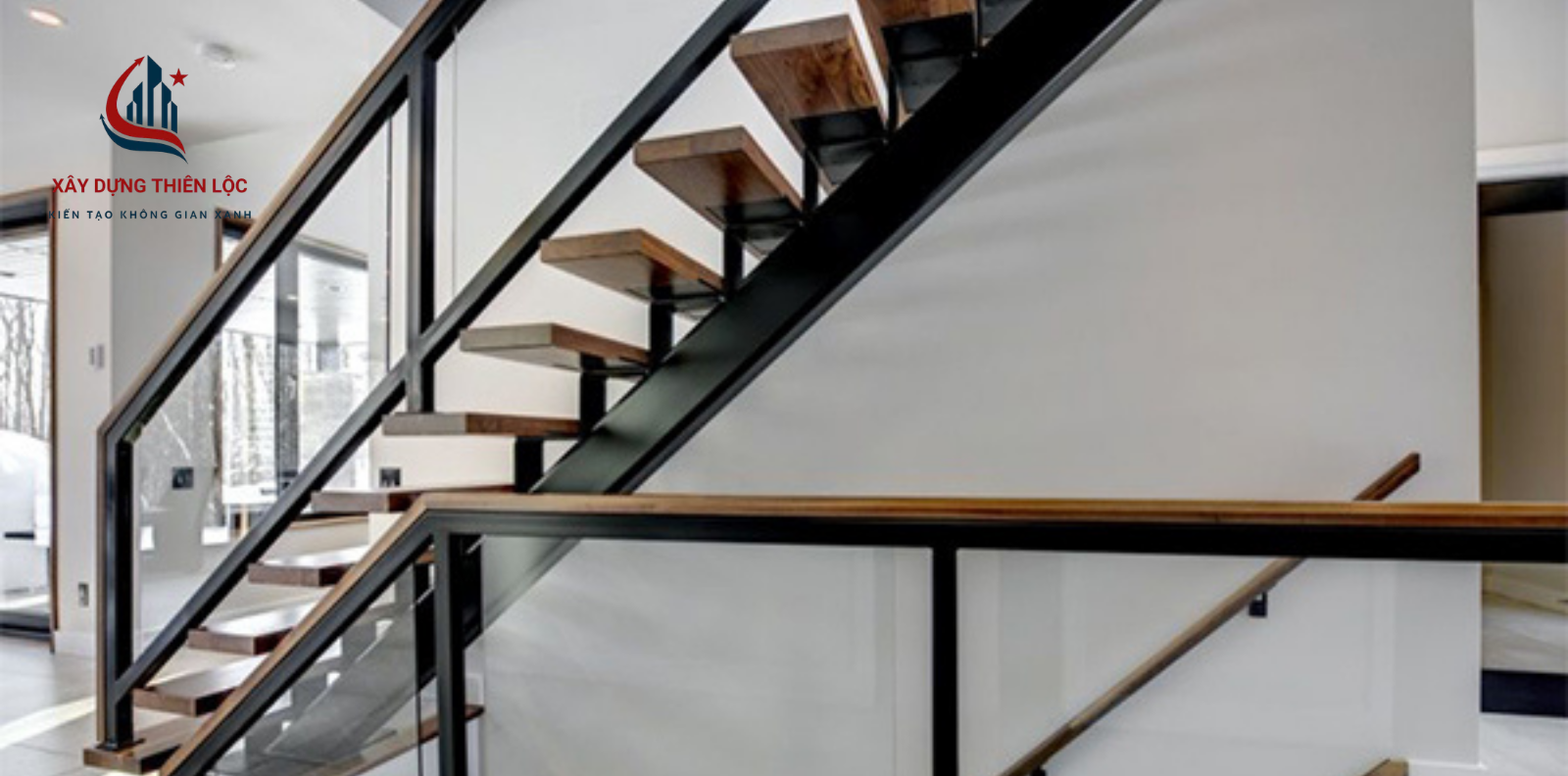 Cầu thang sắt kính (kính + tay vịn gỗ/inox) |