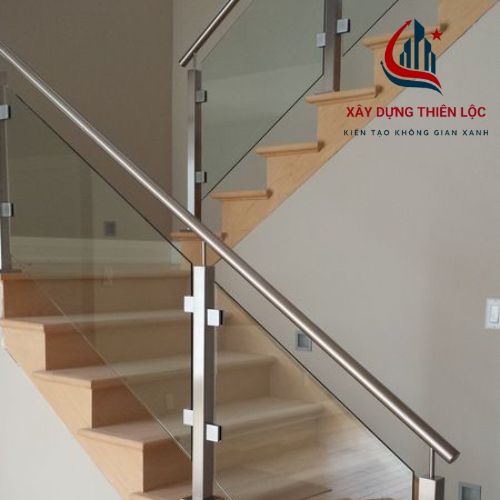 Sử dụng kính cường lực 12mm chịu lực tốt, kết hợp phụ kiện Inox 304 chống han gỉ, mang lại vẻ đẹp thanh thoát cho những căn nhà phố hiện đại tại ngõ phố Ô Chợ Dừa.